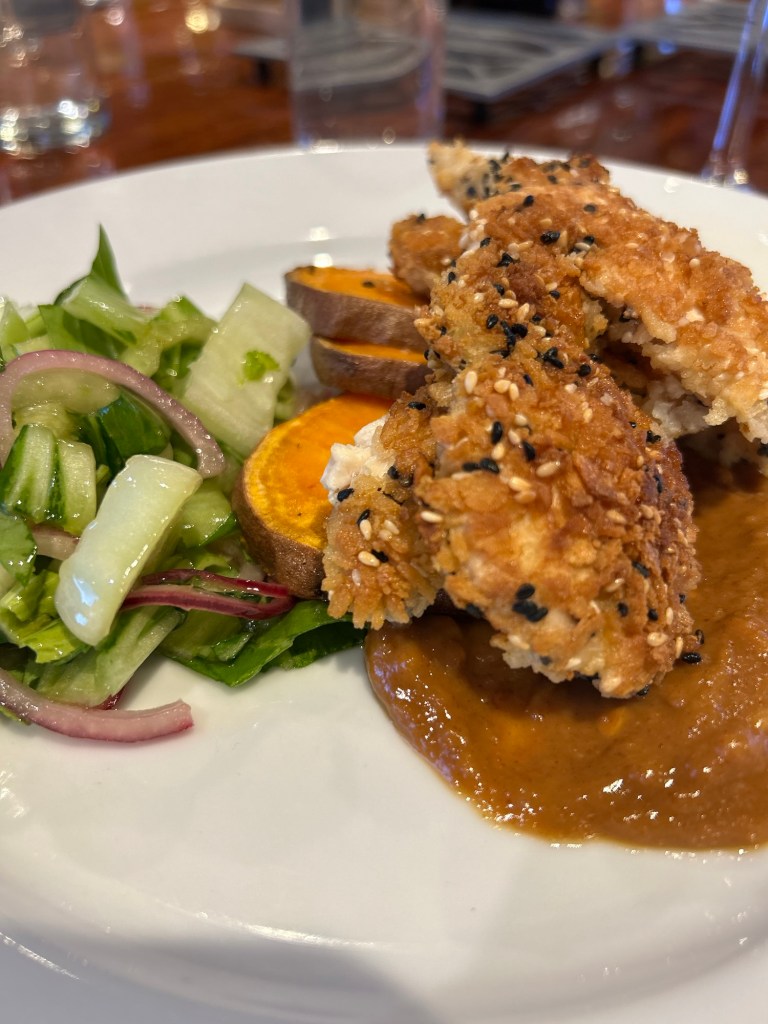 Main course was chicken schnitzel with bang bang sauce and a yummy salad;