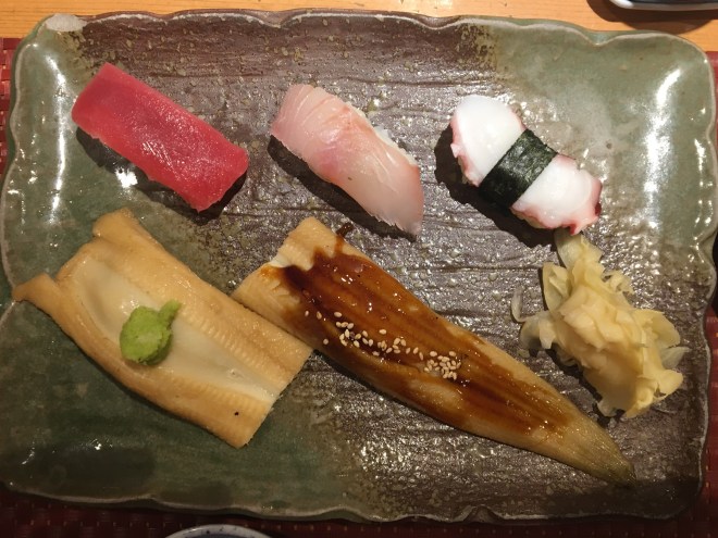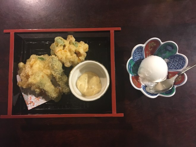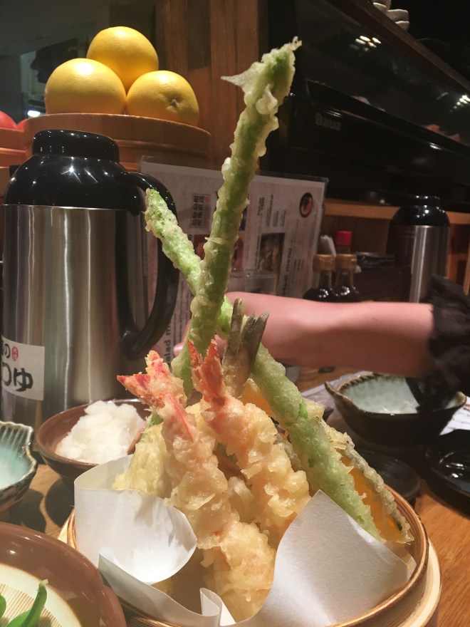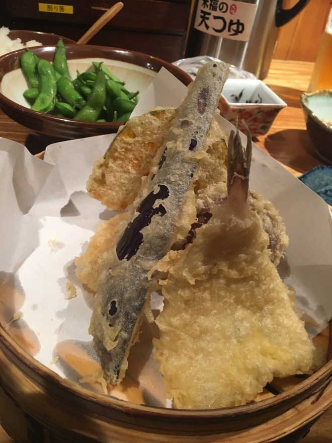 Our last night mirrored our first night as it started to rain. Luckily no typhoon and we arrived at the lovely tempura place and had yet another delicious meal. The only downside to the restaurant is that it plays four Beatles songs over and over and over. So that was two nights of hearing the same songs maybe 16 times – the staff must go crazy – they do seem to shout a lot when people walk in, walk out and other random times… but the tempura is amazing.