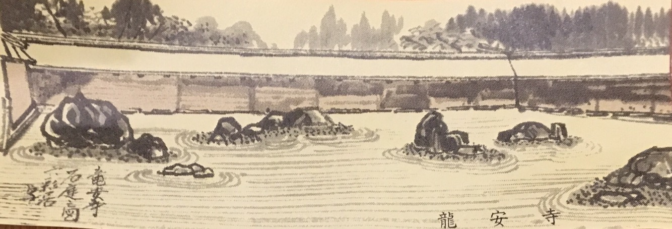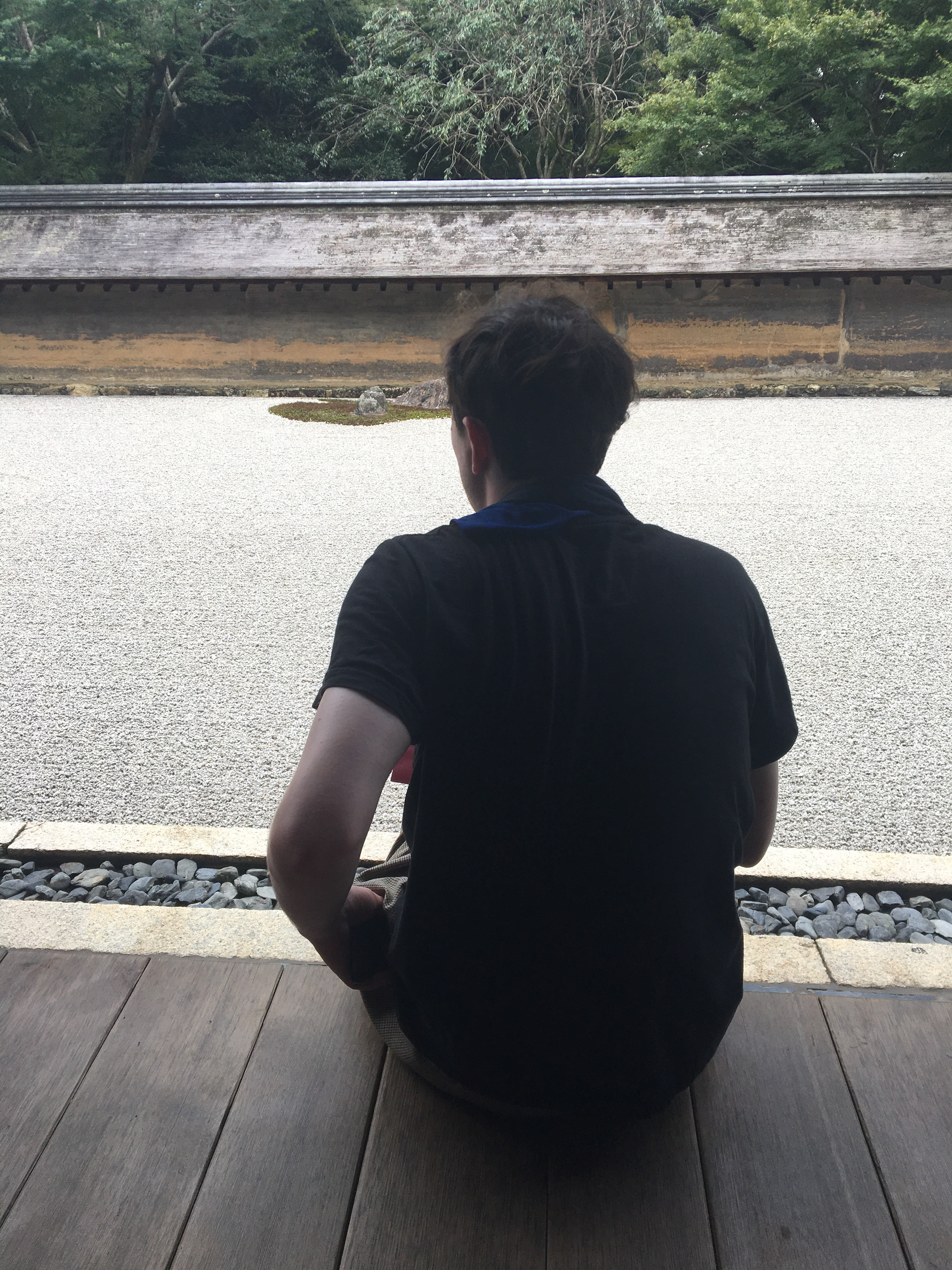 One other interesting fact was that there are 210m people have registered religious beliefs in Japan. So with a population of 120m, that means 90m people have registered two religious beliefs – Shinto and Buddhism. Annie explained that many Japanese follow Shintoism for weddings, Buddhism for funerals, and some even celebrate Christmas. Sounds fine with me! Leaving the Golden Pavilion, we set off for Ryoanji, also known as the Zen temple. Going from gold to rocks was very zen. The rock garden is amazing and, despite the crowds, we were able to sit and look at the garden for quite a while. It is a walled rectangle, 25m x 10m, and filled with beautifully raked white gravel, among which stand 15 stones of various shapes and sizes. The stones are place in such a way that you can’t see them all at the same time – which could be interpreted as no one is able to reach perfection. Other interpretations are that the stones represent a mother tiger leading her cubs across the water. To me, I just thought it looked fab and the raking was superb. Bert reckoned he was able to see all 15 stones so I guess he has reached perfection! I might try and recreate something similar back home…