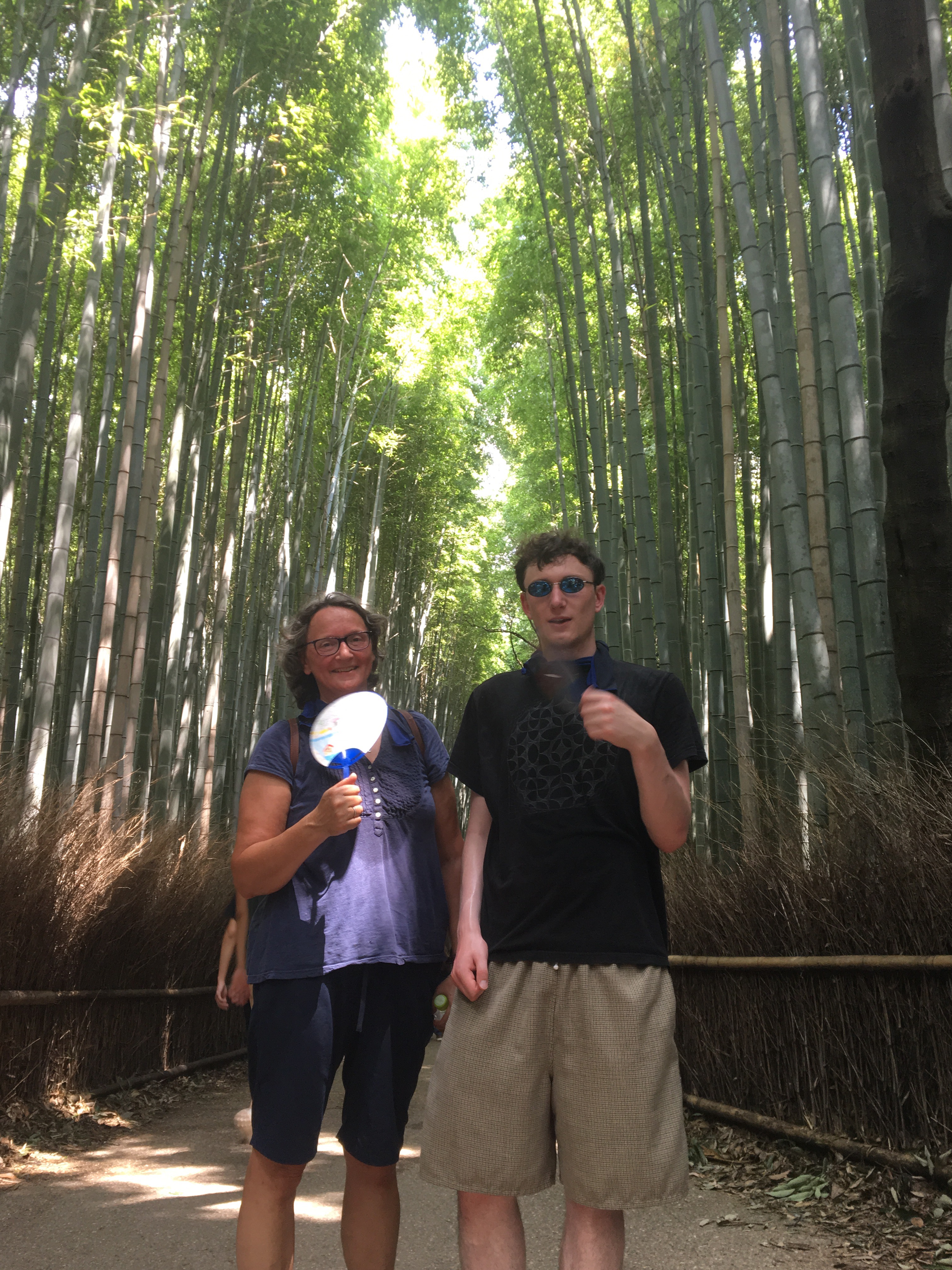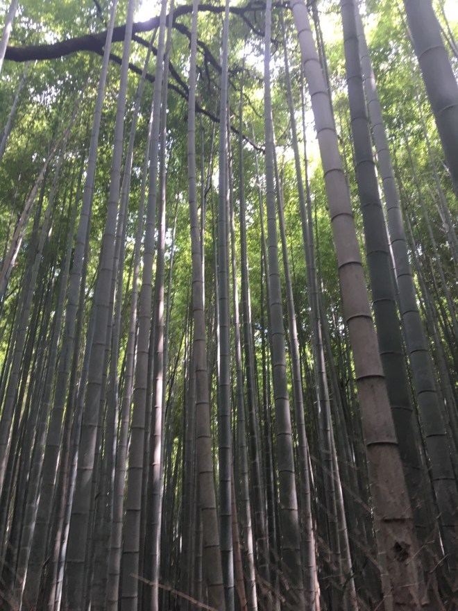 Annie produced scarves for our necks which she had soaked in freezing cold water and they were just the ticket. Then she said we had to cycle 45 minutes to the next place. I really struggled. I have never felt so hot – it was worse than Nepal and I was a the darkest shade of crimson I have ever been. There was no escape. We stopped halfway at a lake and all I wanted to do was jump in. But it seems like the Japanese don’t do jumping in lakes. Instead, we stopped by a vending machine and got some cold drinks, found a tiny bit of shade by the lake, and rested for about 10 minutes. The next part of the ride was through paddy fields and allotments, although seeing clearly through a sea of sweat was hard and I was just concentrating on the bumpy road and feeling hot. But I knew we were heading for the bamboo forest which to mean sounded cool and refreshing. Before (too) long, we hit a shady forest but then had to push our bikes uphill to the bike park. Everything I was wearing felt so uncomfortable. We walked down a path through some very tall bamboo but there was no air or wind, and just loads of other tourists. I was a bit disappointed with the bamboo forests. I had expected something bigger and perhaps some lovely sounds as the wind blew through the bamboo.